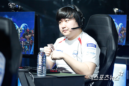 [엑스포츠뉴스=박상진 기자] MVP 블랙 '교차' 정원호가 경기 전 손을 풀고 있다. 3일 서울 송파구 올림픽 공원 올림픽 홀에서 벌어진 히어로즈 스프링 챔피언십 4강에서 MVP 블랙이 중국 이스타를 상대로 1경기를 슨취했다