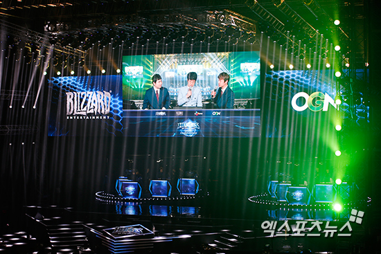 [엑스포츠뉴스=박상진 기자] 히어로즈 오브 더 스톰 스프링 챔피언십이 벌어지고 있는 서울 송파구 올림픽 공원 내 올림픽 홀을 조명이 장식하고 있다. 3일 열리는 경기에서 4강 및 결승 경기가 열린다.