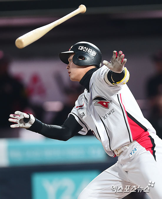 [엑스포츠뉴스=수원, 김한준 기자] 6일 오후 경기도 수원시 장안구 수원kt위즈파크에서 열린 '2016 타이어뱅크 KBO리그' 삼성 라이온즈와 kt 위즈의 경기, 2회말 2사 1,2루 kt 문상철이 2타점 2루타를 날리고 있다.