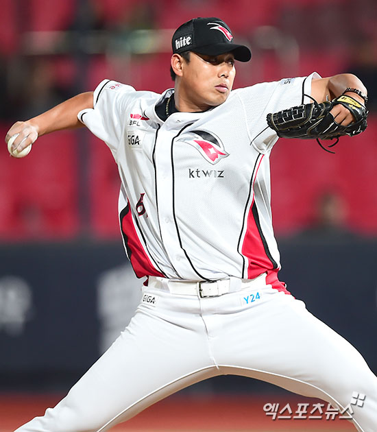 [엑스포츠뉴스=수원, 김한준 기자] 6일 오후 경기도 수원시 장안구 수원kt위즈파크에서 열린 '2016 타이어뱅크 KBO리그' 삼성 라이온즈와 kt 위즈의 경기, 5회초 kt 조무근이 역투하고 있다.