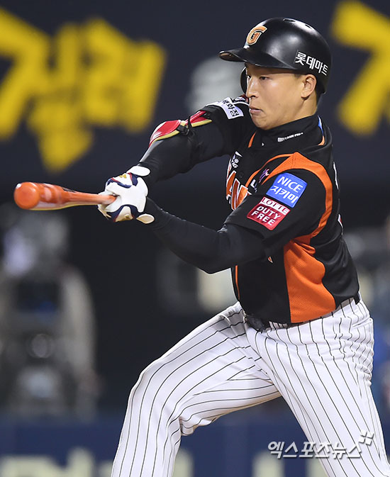 [엑스포츠뉴스=김한준 기자] 13일 오후 서울 송파구 잠실야구장에서 열린 '2016 타이어뱅크 KBO리그' 롯데 자이언츠와 LG 트윈스의 경기, 3회초 무사 1,2루 롯데 손아섭이 체크스윙으로 삼진아웃을 당하고 있다.