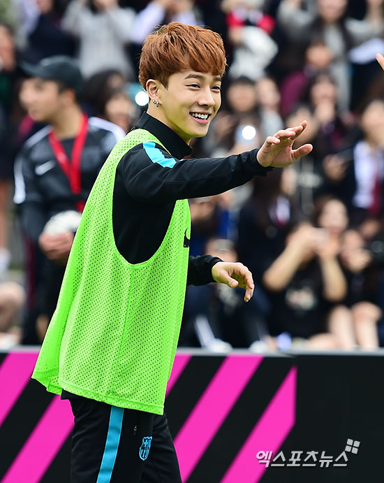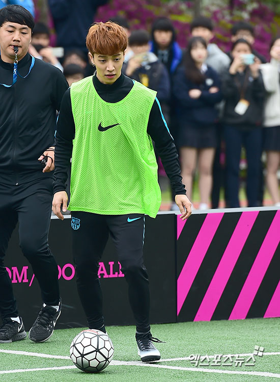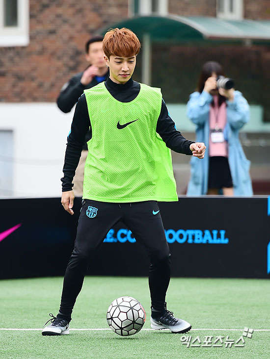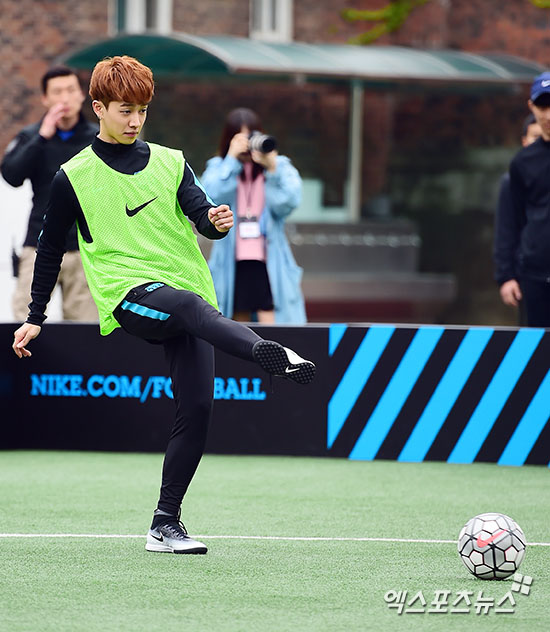 [엑스포츠뉴스=김한준 기자] 21일 오후 서울 송파동 가락고등학교에서 열린 '나이키풋볼 스쿨 챌린지'에 참석한 비스트 이기광이 4대4 미니 축구 경기에 임하고 있다.