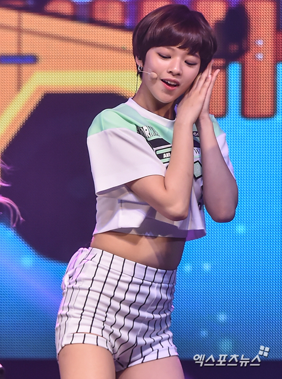 [엑스포츠뉴스=권혁재 기자] 25일 오후 서울 광진구 광장동 예스24 라이브홀에서 열린 걸그룹 트와이스 두 번째 미니앨범 '페이지 투(PAGE TWO)' 쇼케이스에서 트와이스 정연이 멋진 'Cheer Up' 무대를 선보이고 있다.