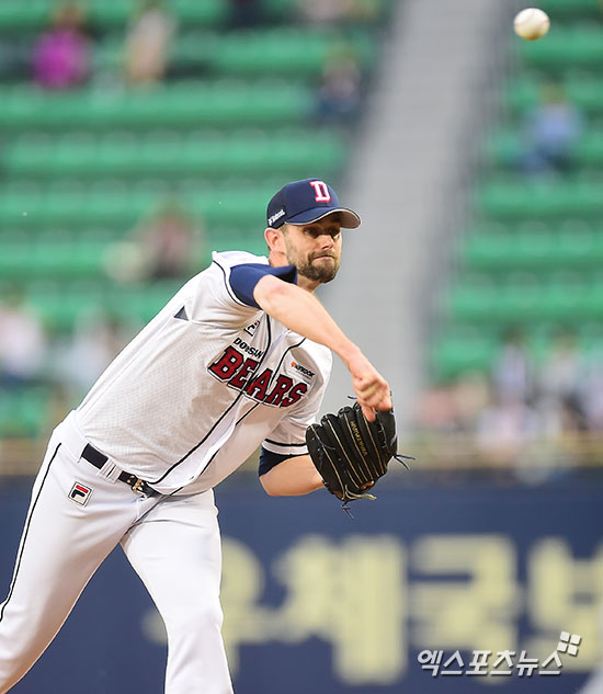 [엑스포츠뉴스=김한준 기자] 26일 오후 서울 송파구 잠실야구장에서 열린 SK 와이번스와 두산 베어스의 경기, 1회초 두산 선발투수 니퍼트가 역투하고 있다.
