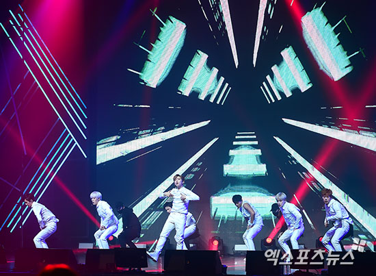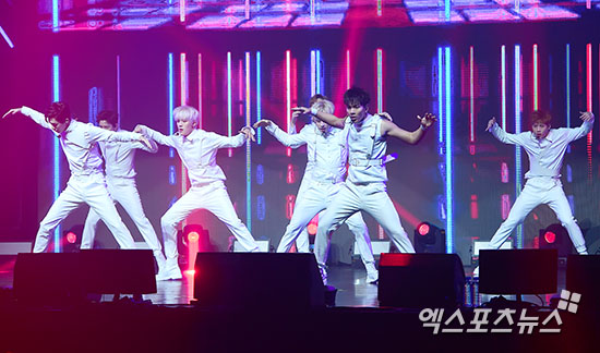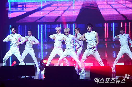 [엑스포츠뉴스=김한준 기자] 18일 오후 서울 광장동 예스24라이브홀에서 열린 힙합 보이그룹 몬스타엑스 세 번째 미니앨범 'THE CLAN PART.1 LOST'의 쇼케이스에 참석한 몬스타엑스가 멋진 공연을 선보이고 있다.