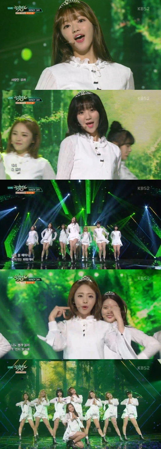 27일 방송된 KBS 2TV '뮤직뱅크'에는 그룹 오마이걸이 출연해 'WINDY DAY' 무대로 컴백했다.