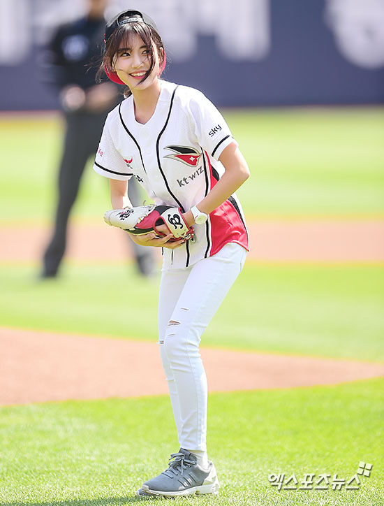 [엑스포츠뉴스=수원, 김한준 기자] 29일 오후 경기도 수원시 장안구 수원kt위즈파크에서 열린 '2016 타이어뱅크 KBO리그' 넥센 히어로즈와 kt 위즈의 경기, 경기 전 배우 정다빈이 시구에 임하고 있다.