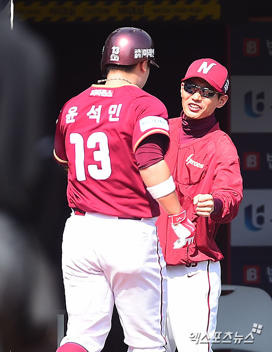 [엑스포츠뉴스=수원, 김한준 기자] 29일 오후 경기도 수원시 장안구 수원kt위즈파크에서 열린 '2016 타이어뱅크 KBO리그' 넥센 히어로즈와 kt 위즈의 경기, 6회초 1사 1,3루 넥센 윤석민이 스리런 홈런을 날린 후 염경엽 감독과 하이파이브를 하고 있다.