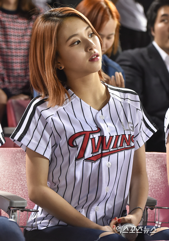 [엑스포츠뉴스=권혁재 기자] 31일 오후 서울 송파구 잠실야구장에서 열린 '2016 타이어뱅크 KBO리그' KIA 타이거즈와 LG 트윈스의 경기, 걸그룹 트와이스 채영이 관중석에 앉아 경기를 관람하고 있다.
