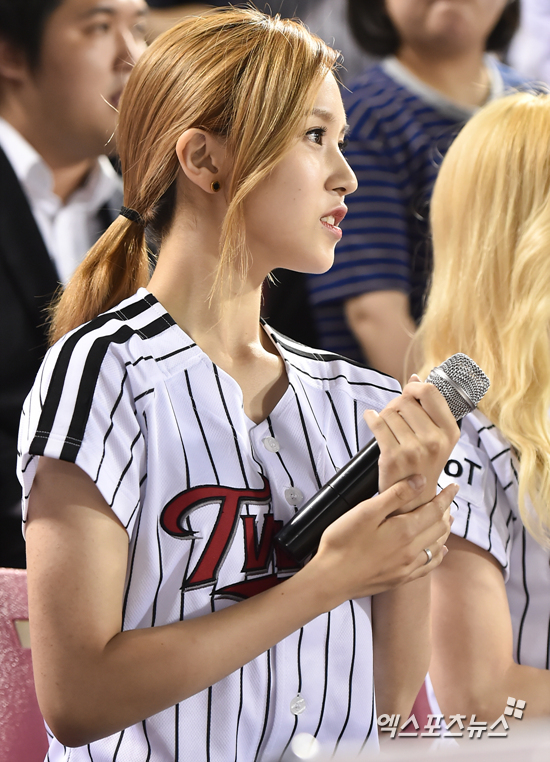 [엑스포츠뉴스=권혁재 기자] 31일 오후 서울 송파구 잠실야구장에서 열린 '2016 타이어뱅크 KBO리그' KIA 타이거즈와 LG 트윈스의 경기, 걸그룹 트와이스 미나가 관중석에 앉아 경기를 관람하고 있다.