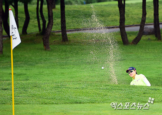 [엑스포츠뉴스=제주, 김한준 기자] 5일 제주특별자치도 서귀포시 롯데스카이힐 제주컨트리클럽(파72. 6,187야드)에서 열린 '제6회 롯데 칸타타 여자오픈(총상금 6억 원, 우승상금 1억2천만 원)' 최종 라운드 경기, 이정민(24, 비씨카드)이 10번홀 벙커샷을 날리고 있다.
