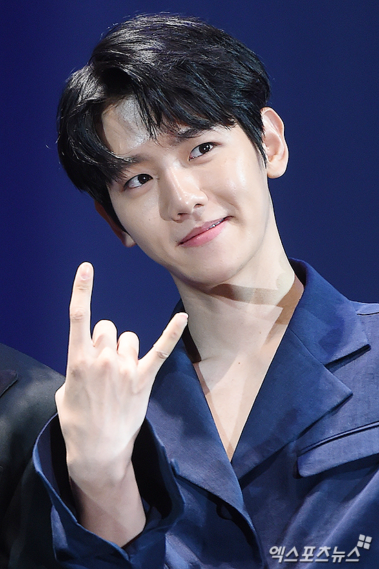 [엑스포츠뉴스=박지영 기자] 8일 오전 서울 삼성동 코엑스 SM아티움에서 열린 EXO 정규 3집 앨범 'EX'ACT(이그잭트)' 컴백 기자회견에 참석한 백현이 포토타임을 갖고 있다.