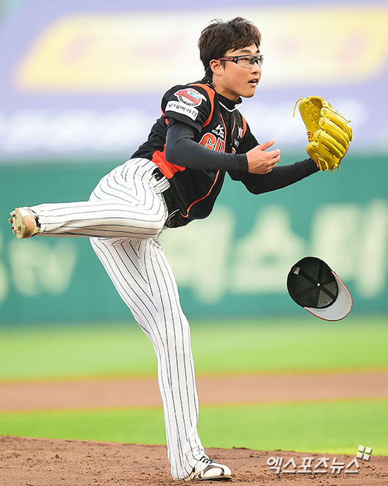 [엑스포츠뉴스=인천, 김한준 기자] 8일 오후 인천SK행복드림구장에서 열린 '2016 타이어뱅크 KBO리그' 롯데 자이언츠와 SK 와이번스의 경기, 1회말 롯데 선발투수 박세웅이 역투하고 있다.