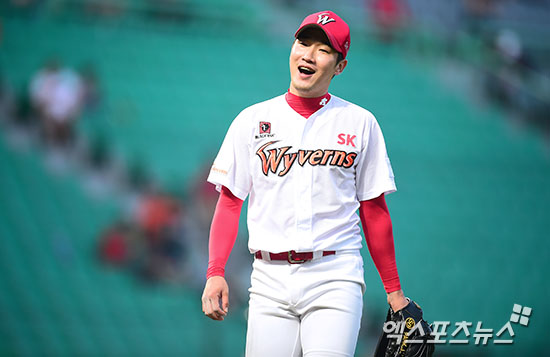 [엑스포츠뉴스=인천, 김한준 기자] 8일 오후 인천SK행복드림구장에서 열린 '2016 타이어뱅크 KBO리그' 롯데 자이언츠와 SK 와이번스의 경기, 4회초 수비를 마친 SK 선발투수 박종훈이 더그아웃으로 향하고 있다.