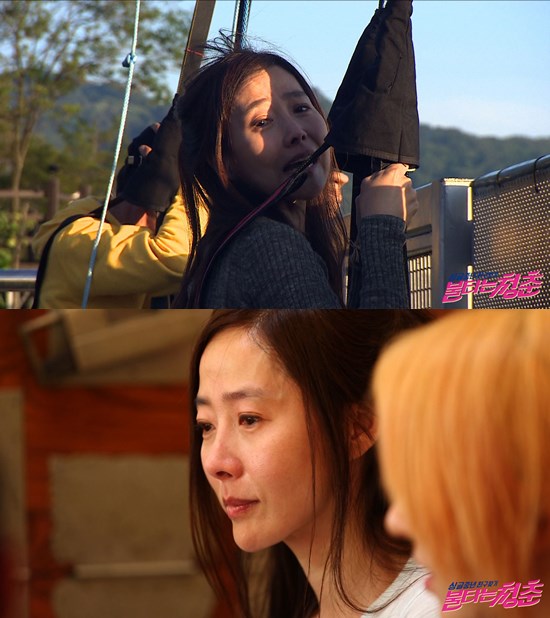 이날 '불타는 청춘'에서 출연자들은 짚와이어 타기에 도전한다. 약320m높이에서 동강을 따라 떨어지는 아찔한 도전에 희비가 엇갈린 가운데 강수지는 눈물을 흘리며 당혹스러워했다. 그는 "엘리베이터 사고 이후 공황장애를 겪었다"고 고백하며 고소공포증을 호소했다.