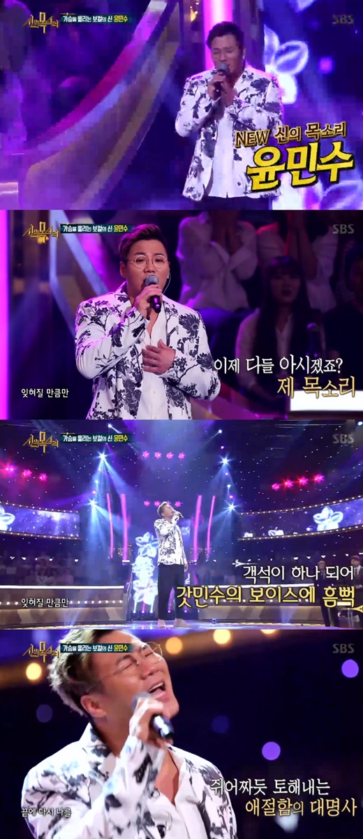 이날 윤민수는 정체를 숨긴 채 박효신의 '야생화'를 열창했다. 윤민수는 도입부에서 낮은 저음을 선보여 궁금증을 자아냈다.