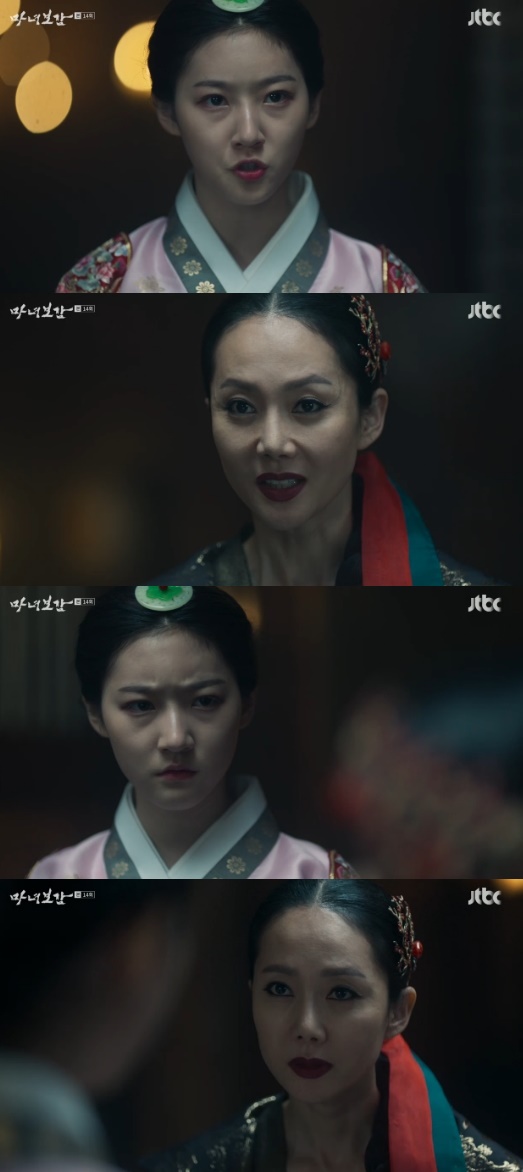 25일 방송된 종합편성채널 JTBC 금토드라마 '마녀보감' 14회에서는 대비 심씨(장희진 분)의 목숨을 위협하는 홍주(염정아)의 모습이 그려졌다.