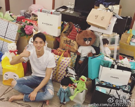 25일 허위주는 본인의 웨이보에 "谢谢你们的礼物。(여러분 선물 정말 감사드려요) 明天,fighting!(내일도 화이팅!)"이라는 글과 함께 사진을 게재했다.