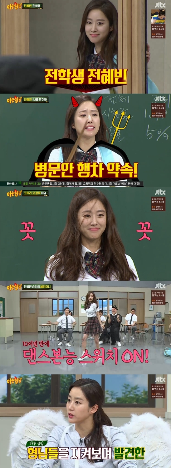 이날 방송에는 전혜빈이 게스트로 출연해 '아는 형님' 출연진들과 함께 유쾌한 상황극을 이어갔다. 전혜빈은 tvN 월화드라마 '또 오해영'에서 예쁜 오해영으로 출연, 예쁜 척을 한다고 많은 욕을 먹고 있음을 토로하기도 하고 과거 자신의 별명 '이사돈'에 걸맞는 춤사위를 선보이기도 했다. '또 오해빈 인사이드'에서는 형님들과 함께 열연을 펼쳤다.