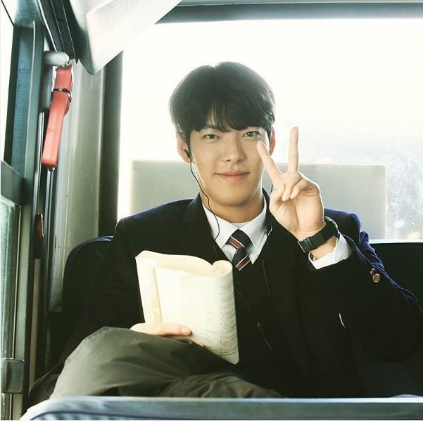 공개된 사진은 KBS 2TV 수목드라마 '함부로 애틋하게'에서 김우빈이 연기하는 신준영의 고등학생 시절 모습이다. 교복을 입은 김우빈은 버스 맨 뒷자리에 앉아 한 손엔 책을 들고 한 손으론 브이를 그리고 있다. 잘생긴 외모로 동네 여학생들의 인기를 독차지하는 남고생의 이미지를 완벽하게 재현해냈다.