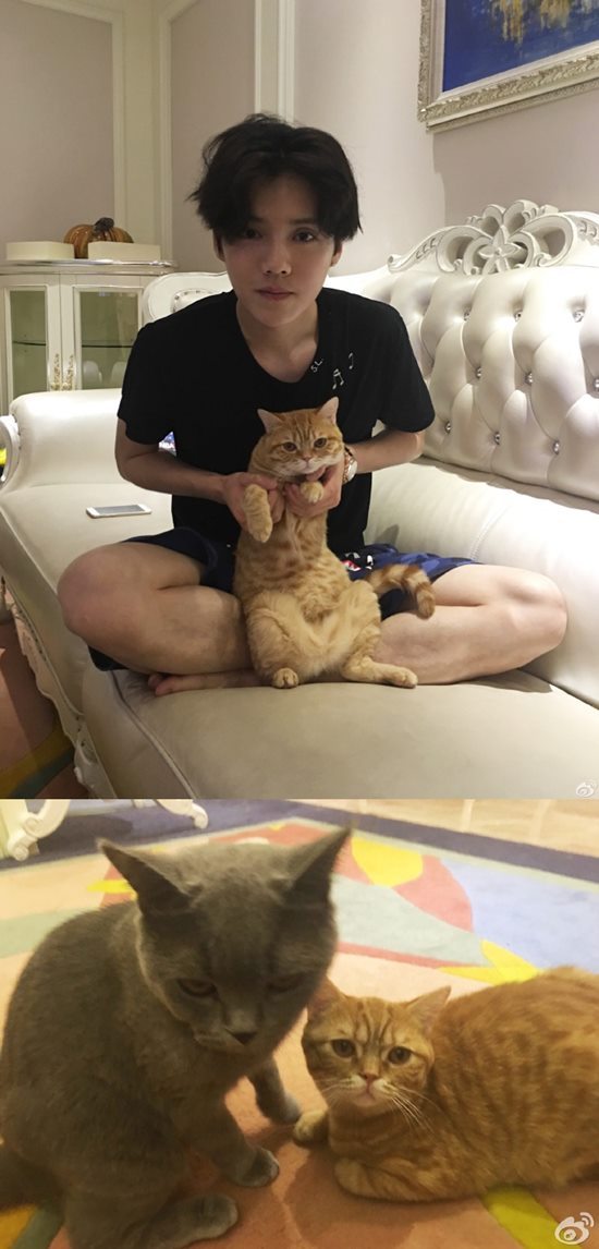 공개된 사진 속에는 반려묘 두 마리와 함께 집에서 휴식을 취하고 있는 루한의 모습이 담겨있다.