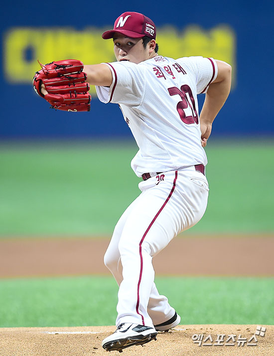 [엑스포츠뉴스 김한준 기자] 7일 오후 서울 구로구 고척스카이돔에서 열린 '2016 타이어뱅크 KBO리그' SK 와이번스와 넥센 히어로즈의 경기, 1회초 넥센 선발투수 최원태가 역투하고 있다.