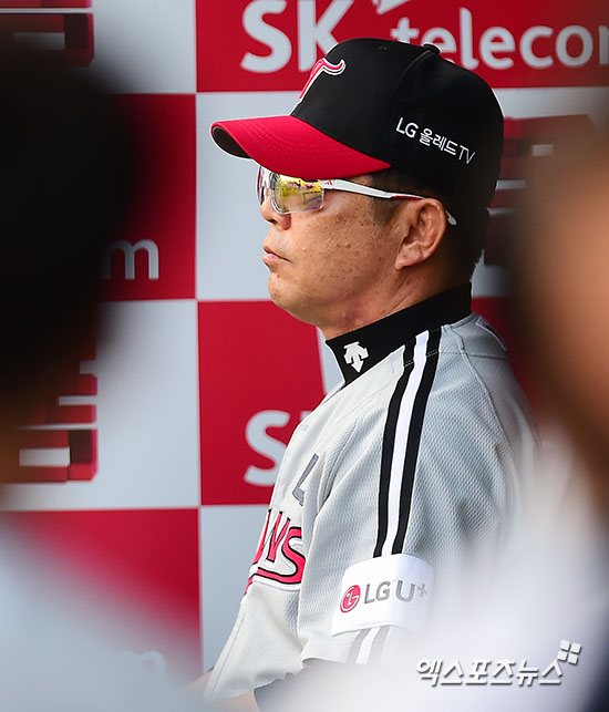 [엑스포츠뉴스 인천, 김한준 기자] 9일 오후 인천SK행복드림구장에서 열린 '2016 타이어뱅크 KBO리그' LG 트윈스와 SK 와이번스의 경기, LG 양상문 감독이 더그아웃에서 경기를 지켜보고 있다.