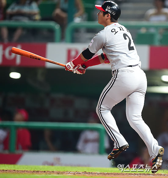 오지환 '만루 홈런 예감에 깡총'[포토]