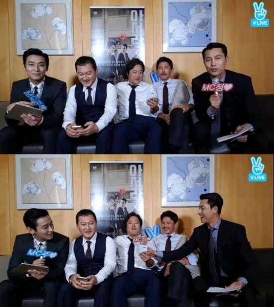 1일 네이버 'V LIVE'를 통해 방송된 영화 '아수라'(감독 김성수) 스팟 라이브에는 배우 정우성, 주지훈, 황정민, 곽도원, 정만식이 참여했다.