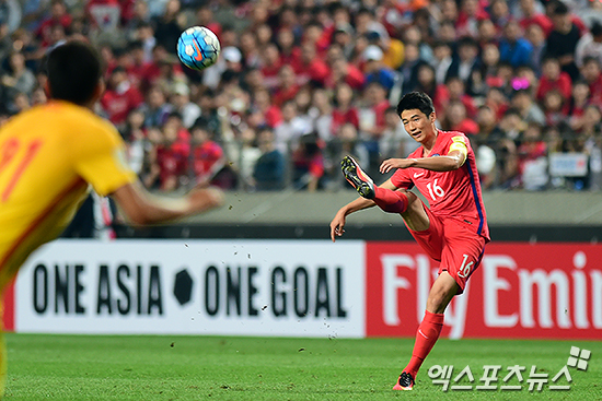 [엑스포츠뉴스 박지영 기자] 1일 오후 서울 성산동 서울월드컵경기장에서 열린 '2018 러시아 월드컵 최종예선' 대한민국과 중국의 경기, 전반 대한민국 기성용이 패스하고 있다.