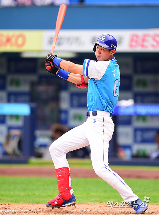 [엑스포츠뉴스 대구, 김한준 기자] 11일 오후 대구삼성라이온즈파크에서 열린 '2016 타이어뱅크 KBO리그' NC 다이노스와 삼성 라이온즈의 경기, 3회말 2사 삼성 구자욱이 타격을 하고 있다. 결과는 좌익수 플라이 아웃.