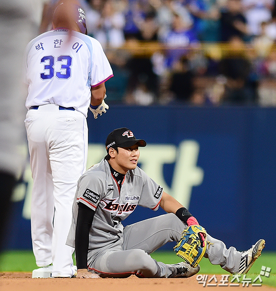 [엑스포츠뉴스 대구, 박지영 기자] 13일 오후 대구삼성라이온즈파크에서 열린 '2016 타이어뱅크 KBO리그' 한화 이글스와 삼성 라이온즈의 경기, 1회말 1사 1루 한화 하주석이 이태양의 실책 후 아쉬워하고 있다.