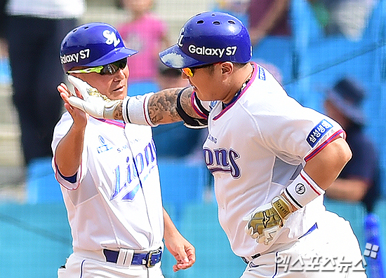 [엑스포츠뉴스 대구, 박지영 기자] 14일 오후 대구삼성라이온즈파크에서 열린 '2016 타이어뱅크 KBO리그' 한화 이글스와 삼성 라이온즈의 경기, 2회말 무사 삼성 최형우가 솔로포를 터뜨린 뒤 베이스를 돌고 있다.