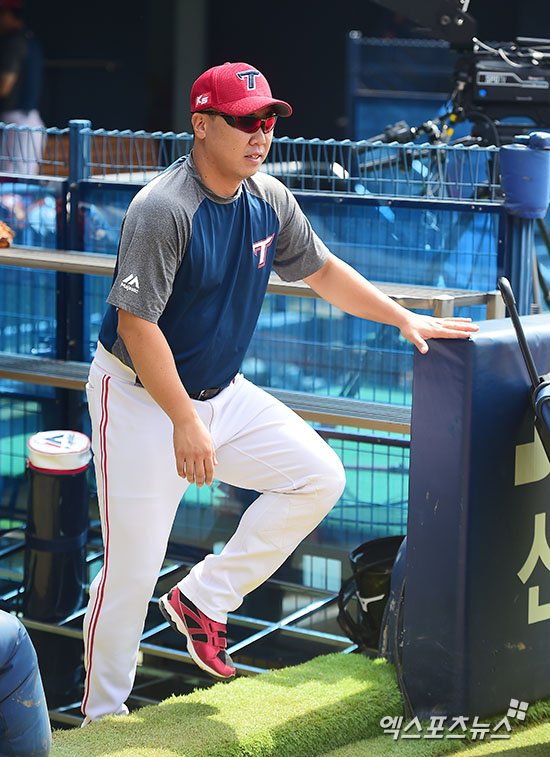[엑스포츠뉴스 김한준 기자] 15일 오후 서울 송파구 잠실야구장에서 열리는 '2016 타이어뱅크 KBO리그' KIA 타이거즈와 LG 트윈스의 경기, KIA 이범호가 훈련을 위해 그라운드로 나서고 있다.