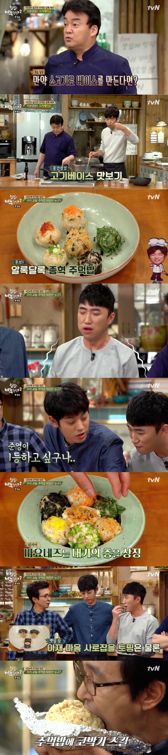 27일 방송된 tvN '집밥 백선생2'에서 백종원은 김국진, 장동민, 이종혁, 정준영에게 주먹밥을 만드는 법을 전수했다.
