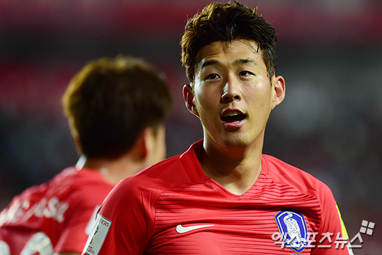 [엑스포츠뉴스 수원, 박지영 기자] 6일 오후 수원시 팔달구 수원월드컵경기장에서 열린 '2018 러시아 월드컵 최종예선 3차전' 대한민국과 카타르의 경기, 후반 16분 한국 손흥민이 역전골을 넣은 뒤 기뻐하고 있다.