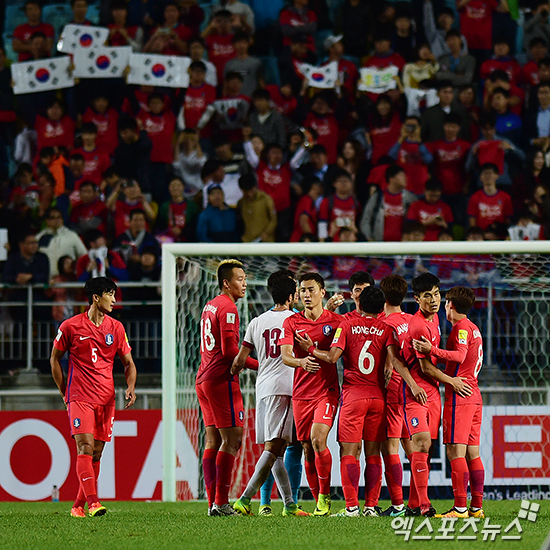 [엑스포츠뉴스 수원, 박지영 기자] 6일 오후 수원시 팔달구 수원월드컵경기장에서 열린 '2018 러시아 월드컵 최종예선 3차전' 대한민국과 카타르의 경기, 대한민국이 기성용의 활약과 손흥민의 역전골에 힘입어 카타르를 상대로 3:2로 승리했다.