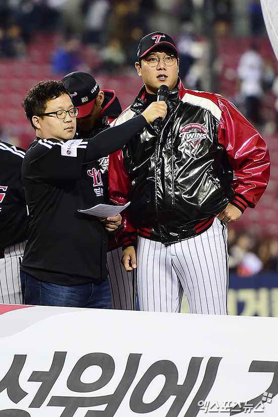 경기 종료 후 LG 류제국이 인터뷰를 하고 있다.