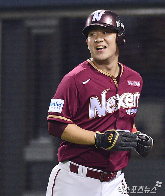 [엑스포츠뉴스 박지영 기자] 17일 오후 서울 송파구 잠실야구장에서 열린 '2016 타이어뱅크 KBO리그 포스트시즌' 넥센 히어로즈와 LG 트윈스의 준플레이오프 4차전 경기, 2회초 1사 1,2루 넥센 김민성이 박동원의 1타점 2루타에 득점에 성공하며 활짝 웃고 있다.