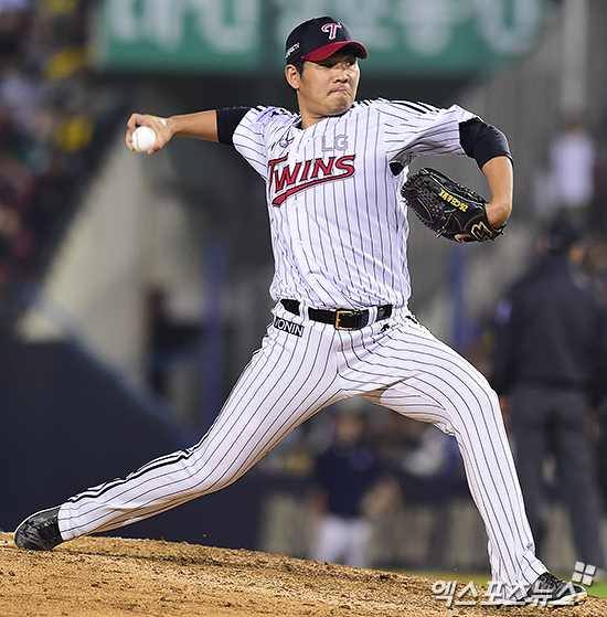 [엑스포츠뉴스 박지영 기자] 17일 오후 서울 송파구 잠실야구장에서 열린 '2016 타이어뱅크 KBO리그 포스트시즌' 넥센 히어로즈와 LG 트윈스의 준플레이오프 4차전 경기, 7회초 무사 1루 LG 정찬헌이 역투하고 있다.