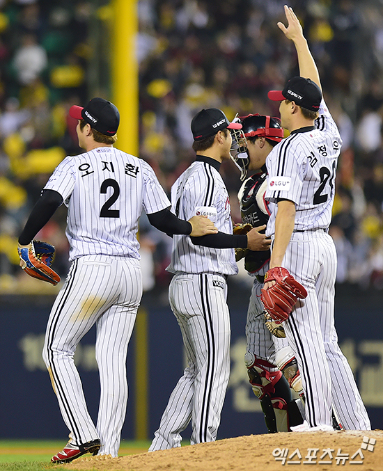 [엑스포츠뉴스 박지영 기자] 17일 오후 서울 송파구 잠실야구장에서 열린 '2016 타이어뱅크 KBO리그 포스트시즌' 넥센 히어로즈와 LG 트윈스의 준플레이오프 4차전 경기, LG가 8회말 오지환의 역전 적시타에 힘입어 넥센에 5:4 짜릿한 역전승을 거두며 플레이오프 진출을 확정지었다.