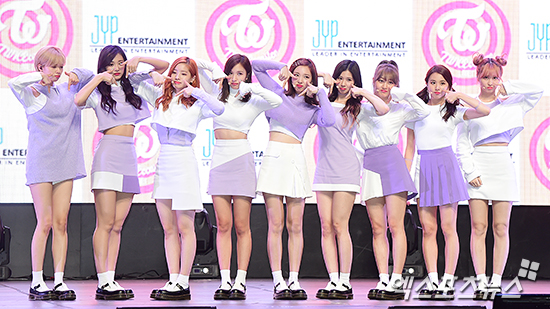 [엑스포츠뉴스 박지영 기자] 24일 오후 서울 한남동 블루스퀘어에서 열린 트와이스 세번째 미니앨범 'TWICEcoaster : Lane 1' 발매 기념 쇼케이스에 참석한 트와이스 정연, 쯔위, 다현, 미나, 나연, 사나, 지효, 채영, 모모가 포토타임을 갖고 있다.