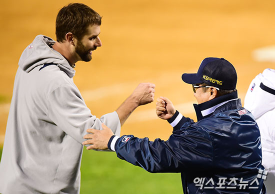 김태형 감독 '역시 우리 니퍼트'[포토]