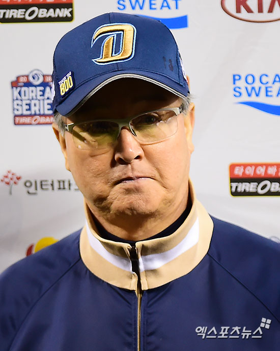 이날 경기에서 패한 NC 김경문 감독이 인터뷰를 하고 있다.