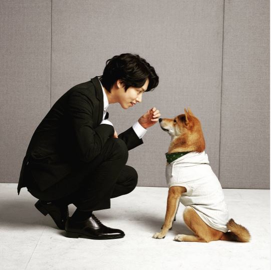공개된 사진 속 김희철은 말쑥한 검정 정장을 갖춰 입고 강아지와 놀아주고 있다. 강아지를 바라보는 김희철의 옆태가 시선을 사로잡는다.
