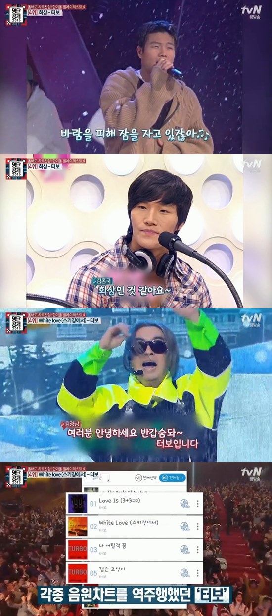 또 터보는 'White love(스키장에서)'도 함께 4위에 올랐다. 지난 2014년 12월 MBC '무한도전'에서 16년 만에 열창한 결과 각종 음원차트를 역주행하는 기염을 토했던 곡이다.