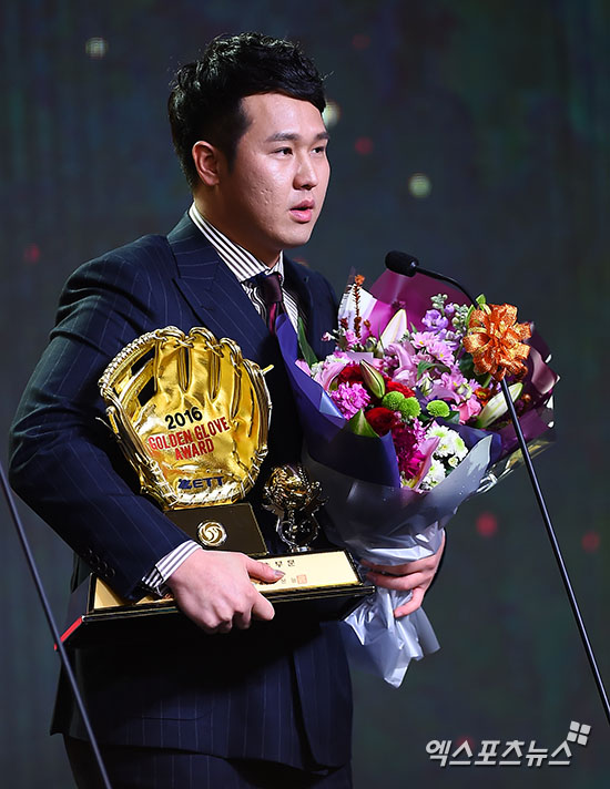 최정 '3루수 부문 골든글러브 수상'[포토]