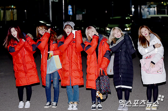 [엑스포츠뉴스 서예진 기자] 16일 오전 서울 여의도동 KBS신관에서 열린 KBS '뮤직뱅크' 리허설에 참석한 그룹 라붐이 출근길에 나서고 있다.