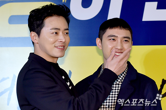 [엑스포츠뉴스 서예진 기자] 19일 오후 서울 행당동 CGV 왕십리에서 진행된 영화 ‘형’ 300만 관객 감사 이벤트에 참석한 배우 조정석, 도경수가 포토타임을 갖고 있다.