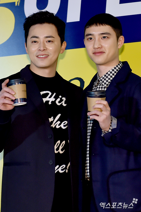 [엑스포츠뉴스 서예진 기자] 19일 오후 서울 행당동 CGV 왕십리에서 진행된 영화 ‘형’ 300만 관객 감사 이벤트에 참석한 배우 조정석, 도경수가 포토타임을 갖고 있다.